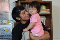 Angel Cruz holds his daughter closely as they share a moment in their home (Image credit: Michelle Zacarias).