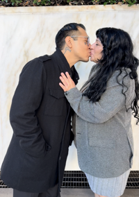 Angel and Jocelyn Cruz share an intimate moment outside of the federal building in Los Angeles (Image credit: Michelle Zacarias).