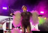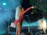 Ruby Reynolds, host for the night, performs during the Latino Pride Festival on Oct. 4, 2025, in downtown Phoenix. (Nicole Macías Garibay/CALÓ News)