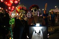 With Tucson’s population being 43% Hispanic according to U.S. Census data and about 70 miles from the Mexican border, it’s no surprise that the All Souls Procession is heavily influenced by Día de Muertos traditions and iconography, such as communal altars called ofrendas featuring portraits of deceased loved ones, their favorite foods and objects, papel picado (cut paper decorations), and cempasúchil (marigold) flowers. Many attendees also dress up as La Catrina, a well-dressed skeleton wearing a large hat who is a symbol of death and the Day of the Dead in Mexico.