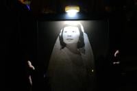Family members hold up a portrait of Fresia Lopez, who died in September, during the 36th annual All Souls Procession in Tucson, Arizona, on Sunday, Nov. 9, 2025. (Alessandra De Zubeldia/CALÓ News)