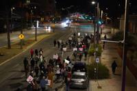 Around 100 protestors march down Congress Street, holding signs against ICE and Tucson police, during a protest in downtown Tucson on Friday, Dec. 5, 2025. (Susan Barnett/CALÓ News)