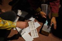 Organizers hand out stickers encouraging people to report ICE activity to the Community Rapid Response Team during a protest in downtown Tucson, on Friday, Dec. 5, 2025. (Susan Barnett/CALÓ News)