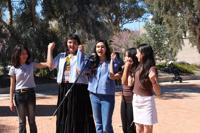 Actors and dancers from the musical promoted the film outside the Tucson Convention Center over a weekend in March, offering early tickets without fees at the TCC box office. Local dancers spun and moved to the music as the girls sang. Even Spider-Man — a stranger walking around downtown Tucson dressed in the superhero suit — joined in.