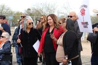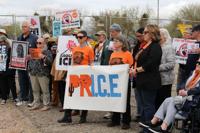 Organizers with Pima Resists ICE (PRICE) protest an incoming ICE detention center in Marana, Ariz., during a news conference on Tuesday, March 10, 2026.