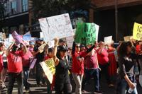 Educators then made their way onto Fourth Avenue, where they merged with protesters from the University of Arizona on their way to join the larger protest downtown. They chanted as they walked out of the park: