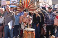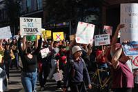 The group was so big, chants in one section — “Unite and fight for immigrant rights!” — clashed with those in another — “Say it once, say it twice. We will not put up with ICE!” — as they marched. Speakers stood on a truck and spoke into a mic to one section of protesters, while others watched a tribal dance on the other side of the street.