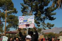 Around 1 p.m. at Catalina Park, Gomez stood on a concrete park table that served as a stage for the educators' rally and called up speakers — teachers and students alike — to share why they were protesting.