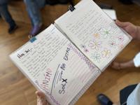 Loved ones and LGBTQ+ advocates write letters for Arbella “Yari” Rodríguez Márquez at the Trans Queer Pueblo’s headquarters on Thursday, Oct. 23, 2025, in Phoenix, Arizona. (Nicole Macias Garibay/CALÓ News)