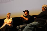 Alex Rivera (center), director of the 2008 film “Sleep Dealer,” discusses how he created the sci-fi film in the early 2000s. Rivera said the film has become increasingly relevant and realistic over time. (Stephanie Casanova/CALÓ News)