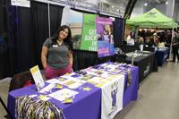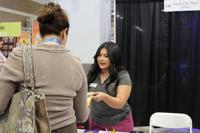 Rashel Olalde, a senior development coordinator in annual giving for Youth On Their Own, shares information about the organization during the El Tour De Tucson expo at the Tucson Convention Center on Thursday, Nov. 20, 2025. (Stephanie Casanova/CALÓ News)