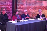 (From left) Confluencenter Director Javier Duran, Tucson Mayor Regina Romero, longtime Chicano community leader and organizer Raul Aguirre and historian and author Lydia Otero talk about the need for a Mexican American Chicano Cultural Center in Tucson on Thursday, Jan. 22, 2026, at Playground Bar.