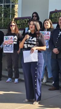 SELA Collaborative Director Wilma Franco speaking at the press conference. (By Jacqueline García)