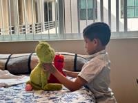 Silvia Aguirre’s son playing in his new room. Photo by Brenda Verano