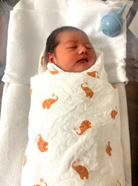 In celebration of having the hospital’s first baby of the year, the parents received a special “First Baby Basket” from the hospital's care team, which included onesies, beanies, blankets, bathing items, and diapers.