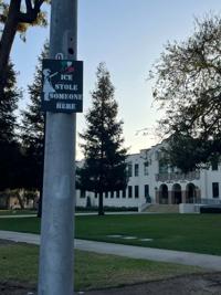 First sign of "ICE stole someone here" placed near Chaffey High School in Ontario. (Citizens4Ontario)