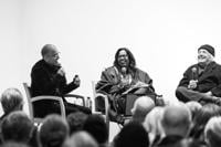 From left: Vincent Valdez, Lynell George and Ry Cooder in conversation at LACMA. Photo credit: Museum Associates/LACMA.