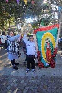 Images of La Virgen could be seen in all shapes and sizes, from flags to ponchos, frames and statues. Children were dressed as Saint Juan Diego and a few girls dressed as Indigenous women.