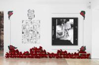The connection between the two artists is visible throughout the entire gallery with both their art and mementos interwoven into the exhibition effortlessly. As soon as you walk through the doors, viewers feel like they have immediately stepped into an issue of Teen Angel’s Magazine with walls lined entirely with Teen Angel’s signature border of bright, red roses and cartoonish writing.