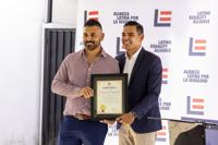 LEA Executive Director Eddie Martinez receives a certificate of recognition from Congressman Robert Garcia who often advocates for the LGBTQ community. Photo Courtesy of LEA