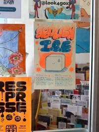 Beyond LêSantos’ resistance signs, other artists opted for different types of print formats. Clarke e. Andros and Marika Dahlin, for example, collaborated with Nonstop Printing to distribute “No ICE” info cards.