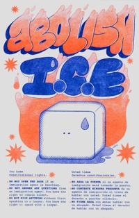 The L.A.-based designer launched a print emblazoned with the words “ABOLISH ICE” in fiery, hand-drawn lettering. An illustration of a melted ice cube sits atop a list of constitutional immigrant rights, printed in English and Spanish.