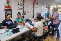 Among them were Rosalba Sernas and Mayvorly Boj, who were paying close attention to the training they were receiving before starting their phone calls.