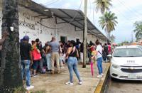 Cuban asylum seekers sell coffee on the sidewalk outside the COMAR office in Tapachula. (Kate Morrissey/Capital & Main)
