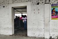 A doorway to the Mexican refugee agency in Tapachula shows lines continue inside the building. (Kate Morrissey/Capital & Main)