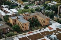 An aerial view of the apartment building raided by federal agents in Chicago’s South Shore neighborhood. (Mustafa Hussain for ProPublica)
