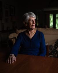 Silvia Muñoz sits at home in Doral, Florida. (Jeremy Lindenfeld)