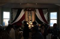 Parishioners walk past a shrine depicting the Virgin of Guadalupe in Dolores Mission Church. (Jeremy Lindenfeld)