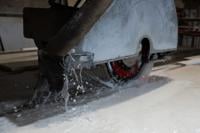 A wet-cutting machine is used to minimize dust at a stone fabrication shop in Sun Valley, Los Angeles, Feb. 18, 2026. (By Semantha Raquel Norris)