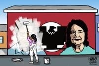 A photo of Carolina Reyes in front of a bookshelf indoors.