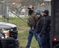 Minutes later, the video shows the agents who were wearing all black with their faces covered getting out of the vehicles and arresting a Latino man who was wearing a black beanie, blue shades on top of his head, black sweater, blue dark jeans and brown work boots. The man was put in the gray Ford truck.