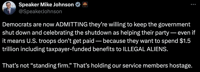 Screenshot of an X post Speaker Mike Johnson made regarding the ongoing government shutdown.