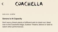 Coachella's push notification via their app, stating that Sonora was at capacity. Photo courtesy of Coachella.