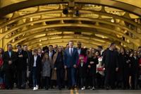 Gov. Gavin Newsom marches with a group of supporters towards the state Capitol for his second inauguration on Jan. 6, 2023. (Photo by Miguel Gutierrez Jr., CalMatters)