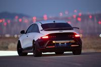 Aerodynamic enhancements — such as a motorsport-inspired swan-neck rear wing and widened fenders — deliver increased downforce while achieving a drag coefficient of just 0.27 Cd, ensuring stability at high-speeds and accentuating the IONIQ 6 N's aggressive, track-ready stance.